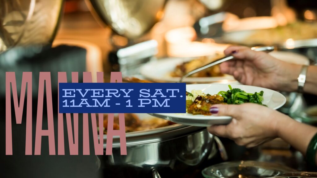 Manna serves meals every Saturday. Want to learn more? Join us for lunch one Saturday! Doors open at 11 a.m.